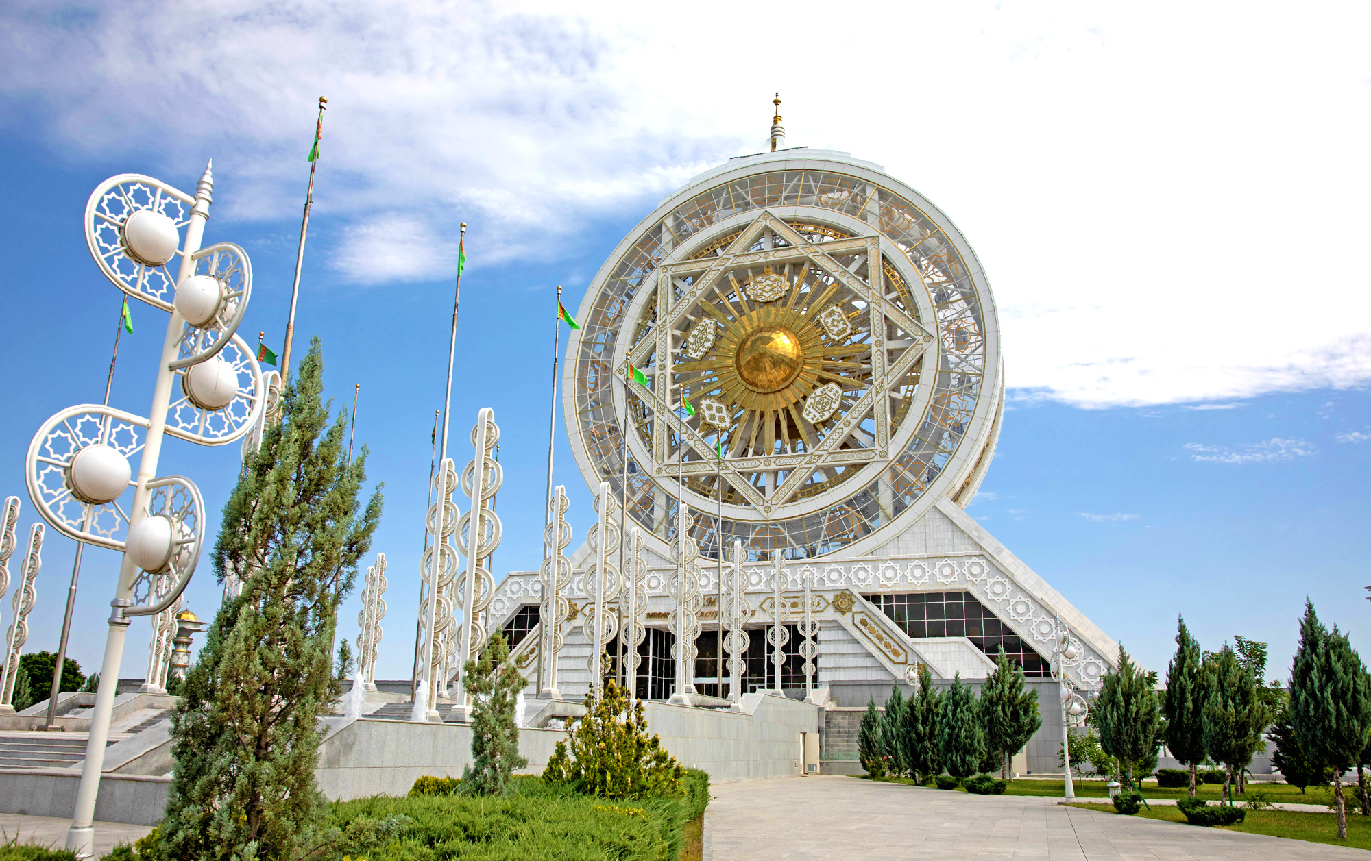 Ashgabat is renowned for its white marble buildings and grand monuments. In the northwestern part of the city rises the Turkmenbashi Ruhy Mosque with its massive golden dome. In the city center, you can see the Ertugrul Gazi Mosque, modeled after the Blue Mosque in Istanbul. Another interesting structure is the "Bagtyyarlyk" Palace of Marriages. Its building, consisting of several star-shaped levels, is crowned with a golden sphere. The Turkmen Carpet Museum showcases examples of traditional weaving.